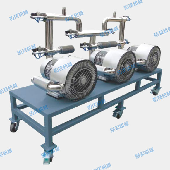 The use of a two stage split pressure fan or roots blower is used as a wind source with high negative pressure and low noise.