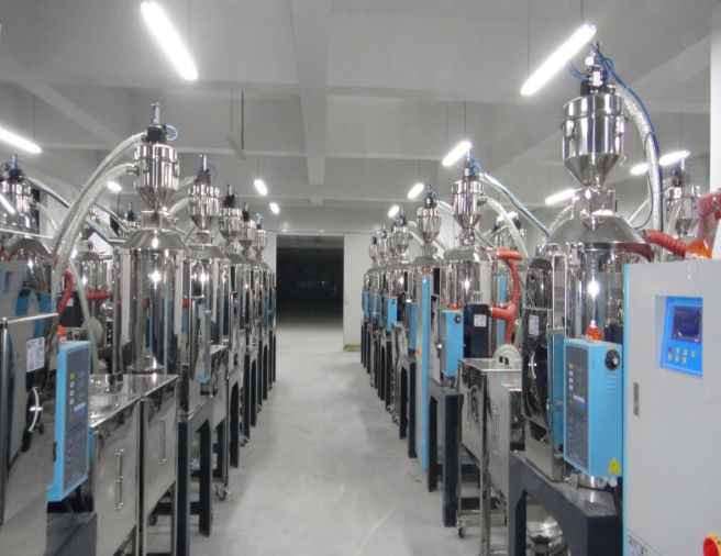 7.中央供料系統(tǒng)采用真空傳送方式,通過集中的管路系統(tǒng)將塑料原料從儲料罐輸送到中央除濕干燥系統(tǒng),然后將干燥后的原料輸送到每臺注塑機中。