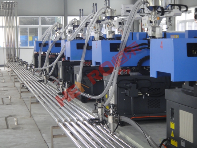 4. 可實(shí)現(xiàn)將多種原料自動(dòng)供給多室任意的注塑加工設(shè)備使用,在這其中可包括原料的干燥處理、配色處理以及按比例的粉碎回收料利用,能夠?qū)嵭懈叨鹊淖詣?dòng)化控制、監(jiān)測等,并能滿足注塑車間24小時(shí)不停機(jī)的生產(chǎn)需要。